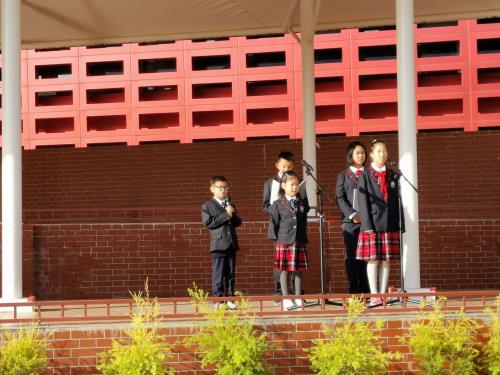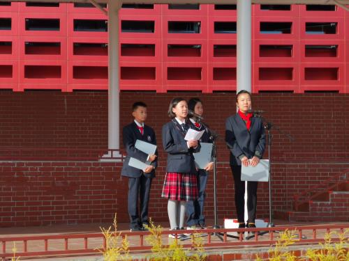 升旗手:预备4班范锦雯、一2班姜博予、童思颖